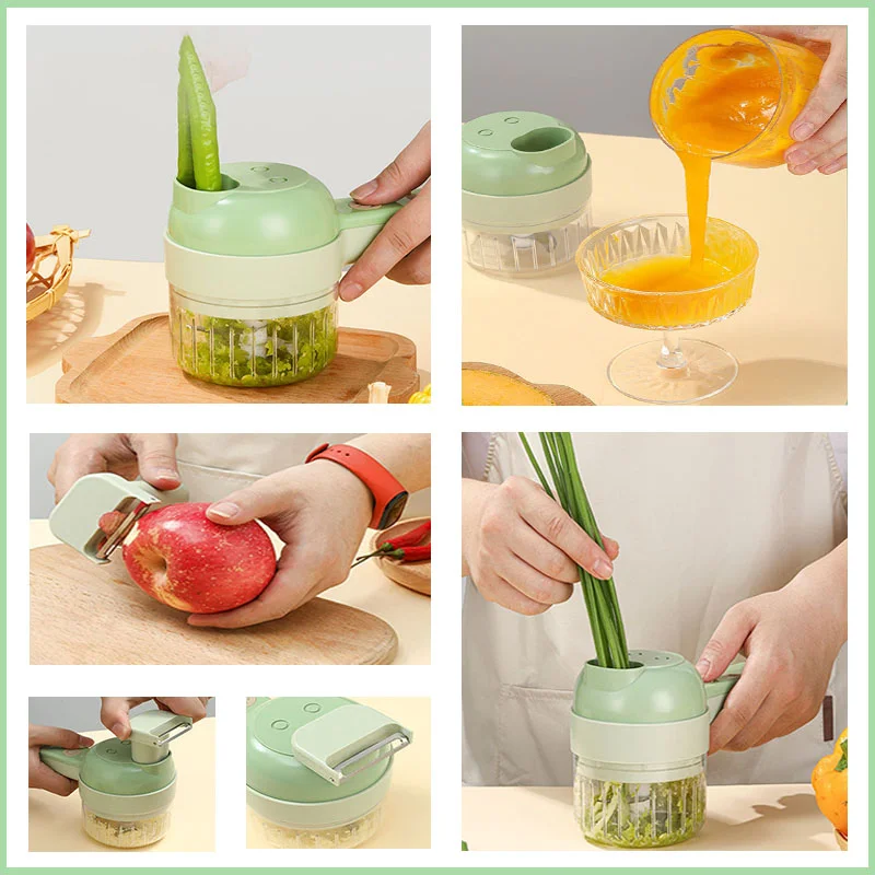 قطاعة خضروات الكهربائية المحمولة للمطبخ 4 في 1 لاسلكية قابلة للشحن و المحمولة